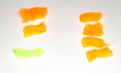 Thread: Heavy tying thread, 3/0 or stronger; Fluorescent orange in this example. Hook: I am using a size 4 Owner SSW in this example. Body: Various colors of egg yarn; steelhead orange and chartreuse in this example.