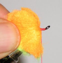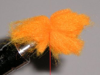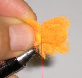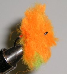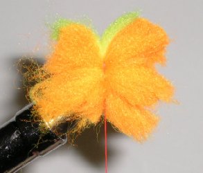 Glo Bug before trimming. Use your tying scissors to shape fly. The closer you trim the yarn, the denser the fly body.